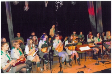 Scout Mandolin Team „Frygi“ – the Mandolin Groupe was established in 1976 in Scholastykowo, after some years it became a scout group and nowadays it is in the care of the Primary School in Ļąkie. Young musicians attract publicity thanks to rich repertoire and artistic output. They have played concerts in Poland and many countries in Europe. They were given many prizes and honourable titles, for example „Representative Team of Regiment of Great Poland.“ The band played twice in Slovakia. The Team consists of mandolins, mandola, guitar, cello and double bass.