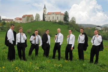 Octet Jurij Dalmatin is the oldest vocal group in Boštanj, a small town in eastern Slovenia, and is also one of the oldest male groups in Slovenia overall, having been founded in 1964. This year is their 50th anniversary. Although none of the current octet singers have yet to reach that age. The average age of the members of the octet is 32, 5 years. Their repertoire consists of renaissance, romantic, all the way to modern and folk music. They have received numerous prizes for singing at various competitions and concerts at home and foreign venues. At the regional competition of choirs and vocal groups in 2013, they received the gold plaque and a special prize for the best performed folk song or an arrangement of a folk song. Their conductor, Tine Bec, also received the prize for the most perspective young conductor (at 20 years old). The octet was considered for the national competition Naša pesem by a jury of renowned Slovenian choral conductors. In 2014 at a regional festival of choirs and vocal groups, they received a golden cup for the best performance according to the spectators. They were yet again considered by the jury for the national competition, which is to be held in 2016.