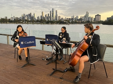 The trio is a Melbourne, Australia based ensemble of students from Caulfield Grammar School, Wheelers Hill Campus. The ensemble comprises of Crystal Qian – violin, Oscar Zhu – cello, Victoria Bahana – piano, all 17 years old and in the final year of their secondary schooling. Their director is oboist and pianist - Meredith Woinarski. The trio was formed in 2018 and has performed and been successful in many eisteddfods and competitions in Australia as well as performing in concerts at their school and the wider community in Melbourne. The Bratislava Festival is their first international competition. The Bradford Trio has an extensive list of works from the Piano Trio repertoire that include Claude Debussy, Dimitri Shostakovich, Anton Arensky, Paul Schonfeld, Astor Piazzola, Josef Haydn, Felix Mendelssohn and Australian composers, Matthew Hindson, Elena Kats-Chernin and Ross Edwards. They also perform works by Australian arranger and conductor, Nicholas Buc, of popular artists such as ABBA, Michael Jackson, Billy Joel, Ben Folds and Queen.