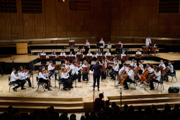 The Orchestra of the Stanisław Moniuszko Primary Music School in Warsaw is a which includes string instruments: violin, cellos; wind instruments: flutes, clarinets, saxophones, bassoon, trumpets and percussion instruments. The orchestra's repertoire includes works from different eras. Film music occupies an important place among the performed works. The orchestra takes part in concerts organized in Warsaw, e.g. in the Concert Studio of the Polish Radio. The band has also given concerts abroad, e.g. in Lithuania. The orchestra's achievements include winning the first prize twice at the National Festival of Orchestras in Będzin, and the Silver Diploma at the International Competition Musica Orbis Prague Festival in the Czech Republic. The orchestra cooperates with the Fryderyk Chopin University of Music in Warsaw by carrying out internships for students.
