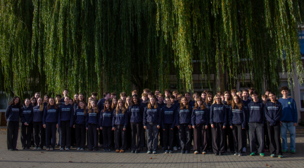 The Youth Choir of the Goethe-Gymnasium Schwerin looks back on a 65-year tradition. It has been invited to music festivals and radio productions and has won numerous prizes at national and international competitions. Since 2015, the choir has been under the artistic direction of Dr. Daniel Ortuño-Stühring and, since 2022, Johann Friedrich Wendorf, with vocal training by Christiane Mikoleit and accompaniment by Yuko Ellinger. In addition to cultivating an a cappella repertoire from the Renaissance to the present — including numerous world premieres of works composed especially for the ensemble — the choir places great emphasis on collaborations with other ensembles, such as the Youth Symphony Orchestra Schwerin (JSO). In 2023, the choir had the honor of contributing musically to the central commemoration ceremony of the National Day of Mourning in the German Bundestag, attended by numerous national and international dignitaries. Recent achievements include the Golden Diploma at the 11th International Choir Competition Cracovia Cantans in 2022, a “very good” result at the German Choir Competition 2023 in Hanover, and the Grand Prix at the 32nd International Choir Competition in Verona in 2024. In 2025, the choir once again won the Grand Prix at the Young Bohemia International Choir Competition in Prague. The choir currently consists of 65 singers.