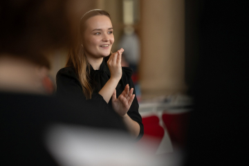 Yelyzaveta Yanko is a young and dedicated choral conductor, originally from Ukraine and currently a fifth-year student of choral conducting at the Department of Composition and Conducting at the Academy of Performing Arts in Bratislava. Alongside her studies, she actively works with young singers, devoting herself to their artistic and personal development through music. With enthusiasm, sensitivity, and a careful approach to vocal culture, she leads the female choir ALIS as well as the children’s choir Arietta, guiding both ensembles towards a balanced, fresh, and expressive choral sound.